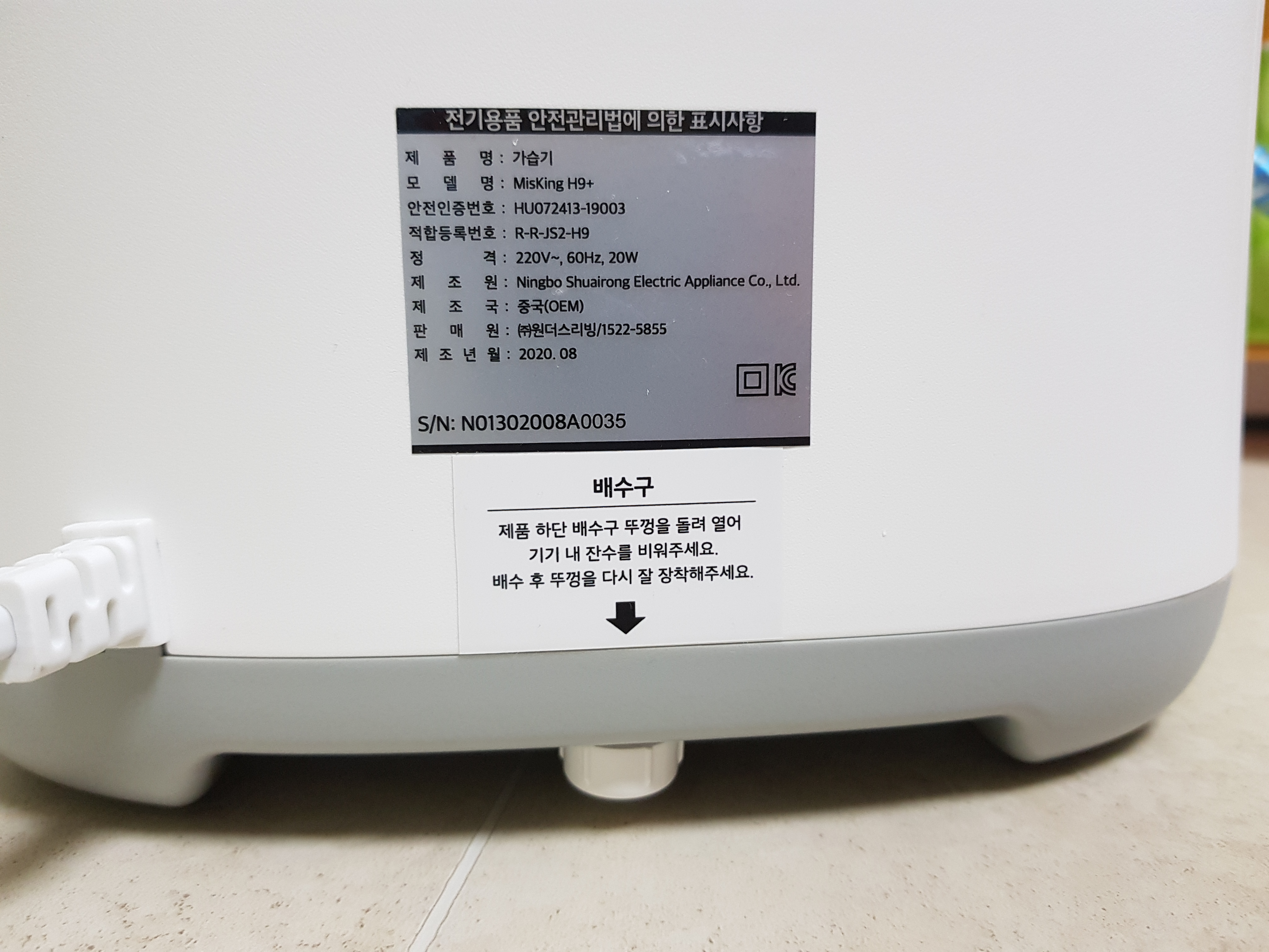 가습기에 따라 이 수위 확인창이 있는 경우도 있고 없는 경우도 있는데, 편리한 것은 수조 통 수위 확인이 가능한 게 써보니 확실히 좋습니다. 수위 창이 없다면 일일이 가습기 수조를 꺼내어 확인해야 되는 번거로움이 있습니다.