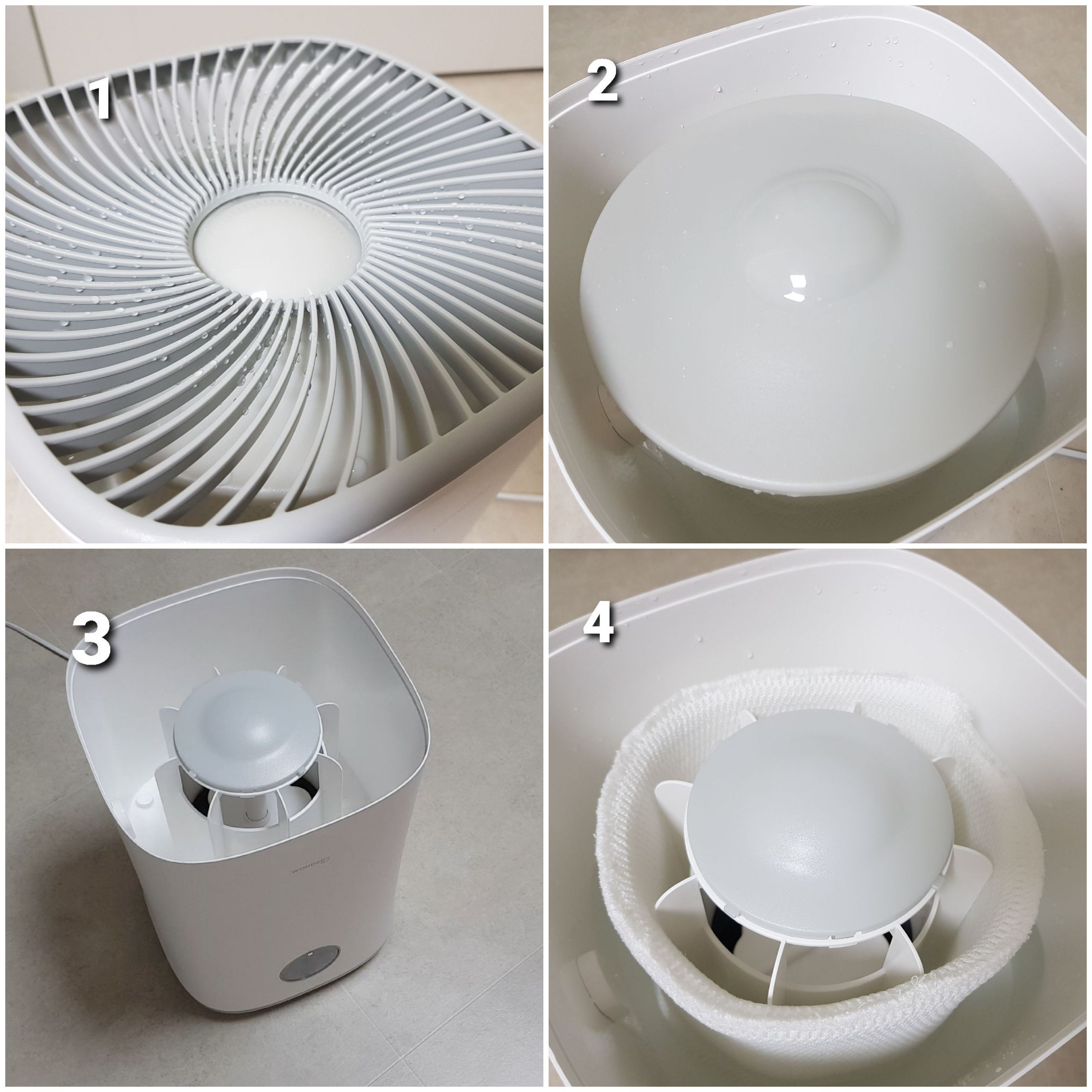 가습기의 뚜껑을 열어 속을 같이 살펴볼게요.