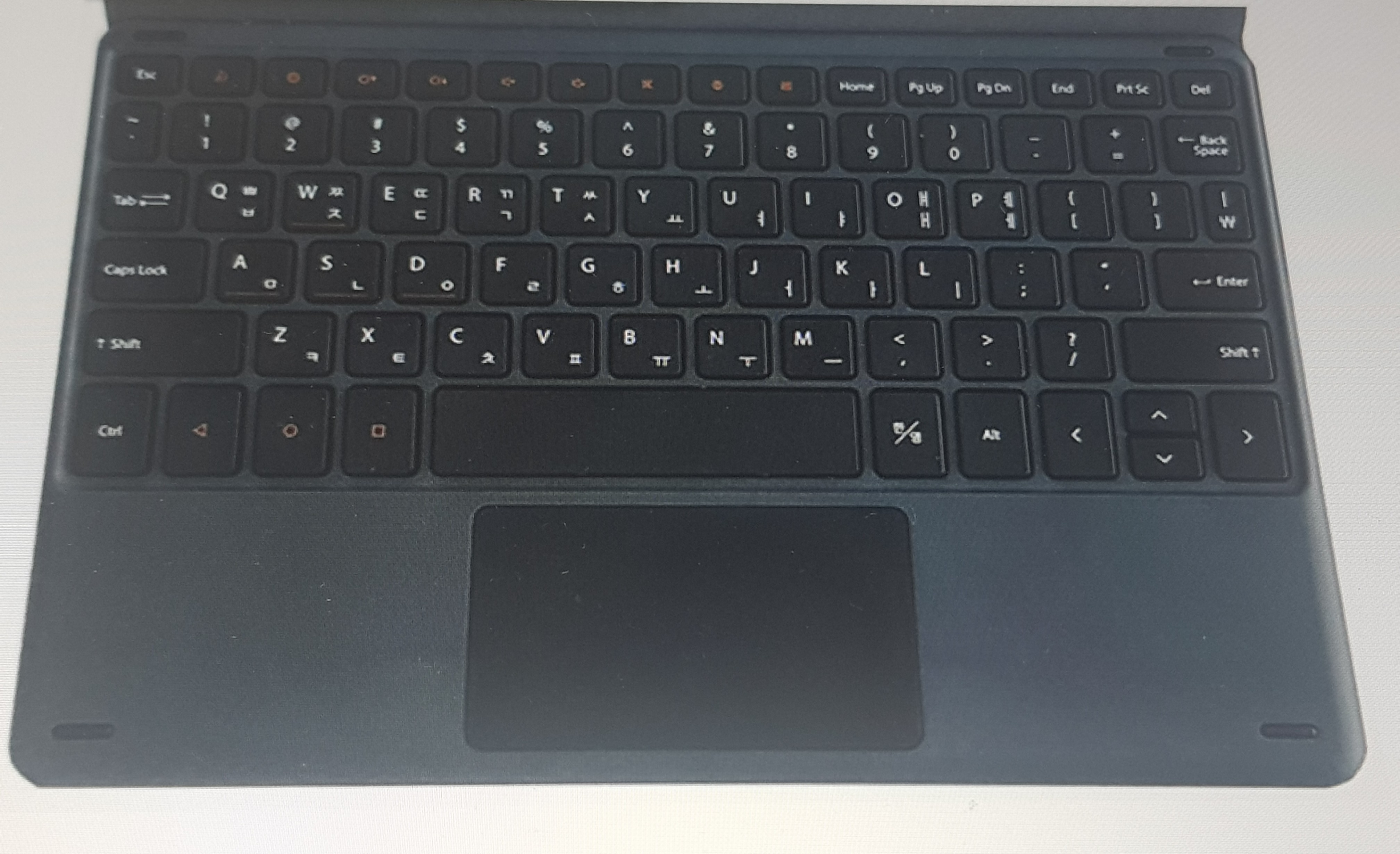 10인치에 맞는 키보드 사이즈다 보니 일반적인 노트북 키보드보다 배열이 좁은 경향이 있습니다. 하지만 몇 번 사용하는데 익숙해지면 오타도 별로 나지 않는 타입입니다.