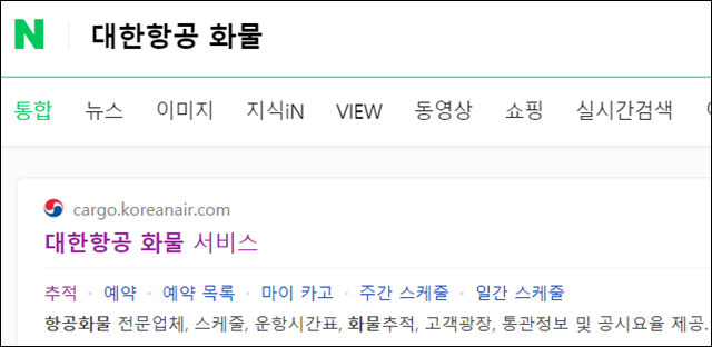 검색포탈에서 "대한항공 화물"이라고 검색해 봅니다.