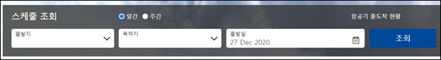 만약 AWB를 모르고, 항공편이랑 시간만 안다면 아래와 같이 스케줄 조회에서 출발 공항 및 도착 공항에 대한 약어를 입력해주면 검색이 가능하겠습니다.