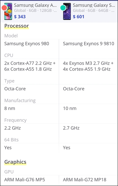 엑시노스 9810과 엑시노스 980의 등급의 차이가 있으니 비교해보면 엑시노스 9810이 더 나을 수 있습니다. 하지만 엑시노스 980은 엑시노스 9810 출시 이후 1년 8개월이 지나고 나온 미드 레인지 급으로 개선이 많이 된 것으로 보입니다.