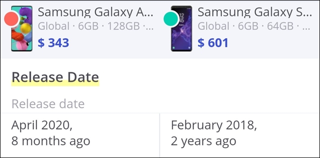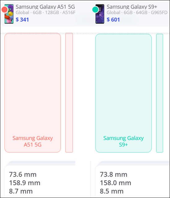 삼성 스마트폰 갤럭시 A51을 갤럭시 S9+와 비교해보기