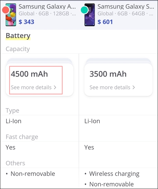 갤럭시 A51는 4500mAh로 갤럭시 s9+ 보다 1000mAh 더 큰 배터리가 들어있습니다.