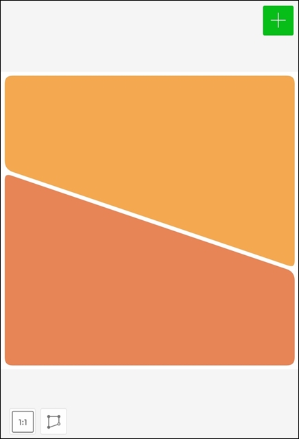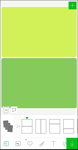 라인 카메라 앱에서의 콜라주 만들기 강점이 여기에 있다고 생각되네요. 일반적으로는 콜라주를 만들면 정해진 형태를 그대로 사용해야 하는데, 이 어플에서는 화면의 하단에 비율 선택 탭 바로 우측에 있는 아이콘을 누르면 아래와 같이 형태를 바꿀 수 있게 변합니다.