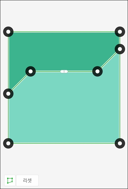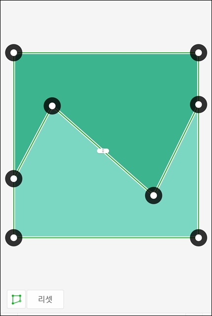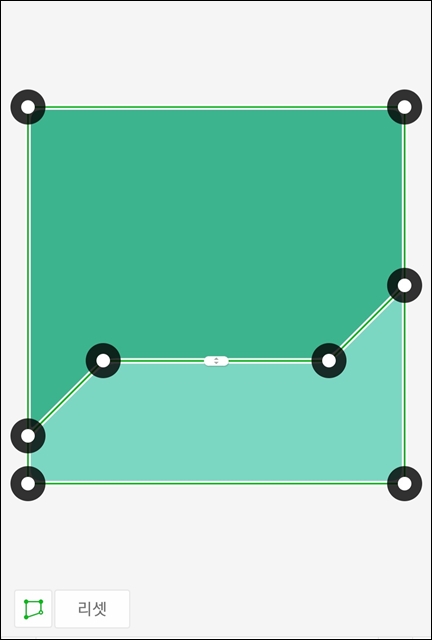위와 같이 모든 모서리에 검은색 점이 나타나죠. 위에 사진은 가운데 부분에 있는 이동선을 누른 후 그 선을 위아래로 움직여본 후 찍은 사진입니다. 위와 같이 정해진 형태가 아닌 변경된 형태의 콜라주를 만들 수 있죠.