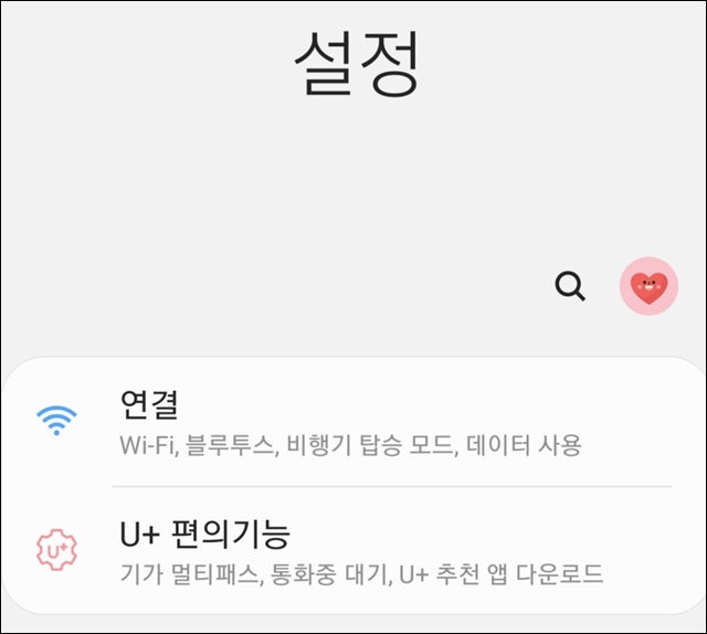 설정화면에서 맨 위쪽에 있는 "연결" 메뉴를 선택하여 들어가 봅니다.
