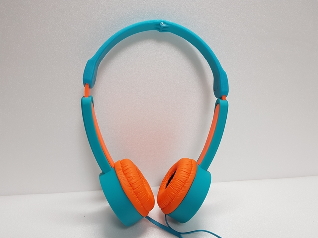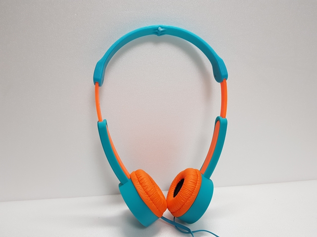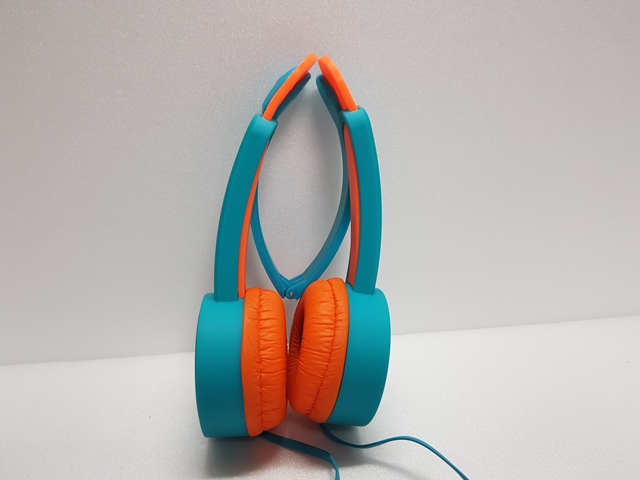 액토 키즈 헤드셋을 개봉하여 본모습입니다. 접이식 형태로 된 모습이 보이며 케이블과 연결된 유선 헤드셋입니다.