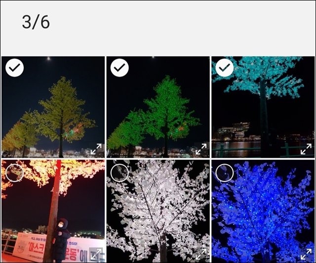 위와 같이 6개의 사진을 선택했더니 6/6이라고 알려주네요.