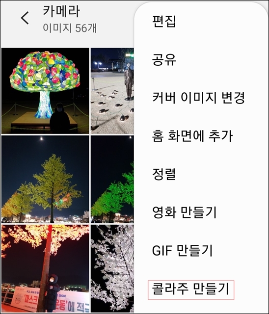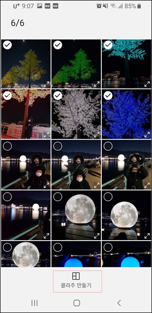 그리고 나면, 위와 같이 갤러리 앱 하단에 있는 "콜라주 만들기"를 선택해주세요.