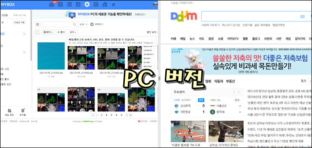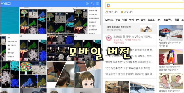 아래의 모습이 세로 모드로 된 모습입니다. 네이버와 다음의 메인 화면을 띄워놓았는데, 위쪽에는 네이버 화면, 아래쪽에는 다음의 화면이 보이네요.