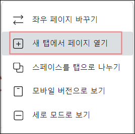 새 탭에서 페이지 열기는 현재 스페이스 화면은 계속 쓸 예정인데, 잠깐 상세한 내용을 큰 화면에서 보고 싶을 때!