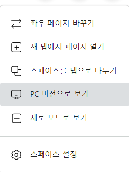 스페이스의 "---" 화면을 다시 누르면 "PC 버전으로 보기"를 선택해서 원래의 PC 화면으로 볼 수도 있습니다.