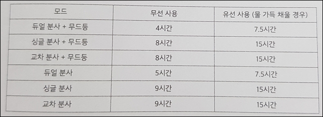 유선으로 사용하는 것이 무선으로 사용하는 것보다는 좀 더 오래 사용이 가능하네요. 최대 15시간까지 사용 가능하다고 하니 하루 종일 사용도 거의 가능하겠습니다.