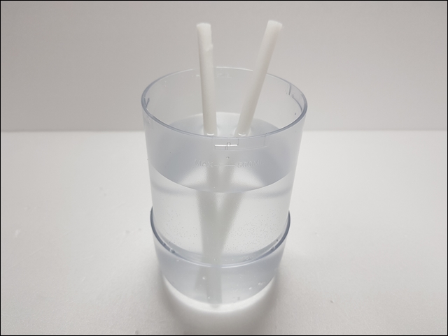 그래서 위와 같이 가습기 필터만 담가서 1~2분 정도만 있어도 충분히 빠르게 물이 흡수가 되는 것을 볼 수 있습니다.