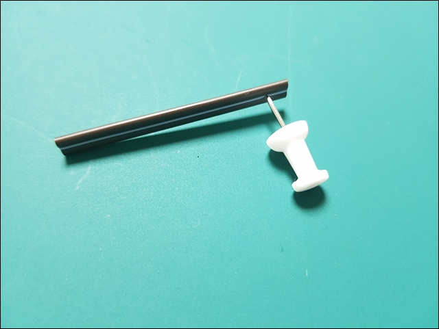 커피 스틱 양쪽 끝으로 부터 약 5mm 정도 안쪽 위치에서 압정을 가지고 구멍을 뚫어주세요.