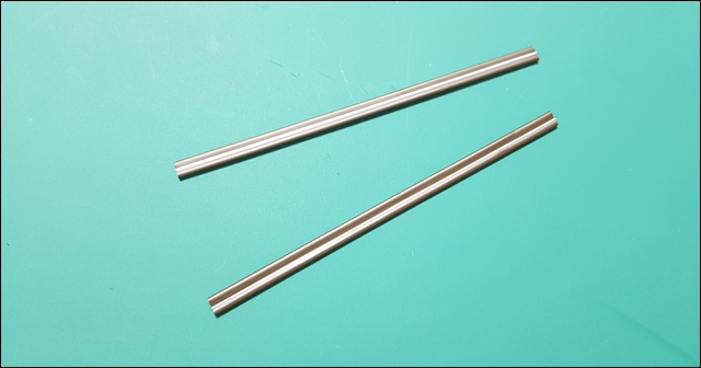 위에서 컷팅이 다되었다면 아래와 같이 양쪽 끝 부분에 V자 형태로 작게 컷팅(모따기)을 해주시면 됩니다.