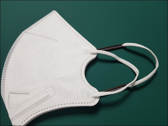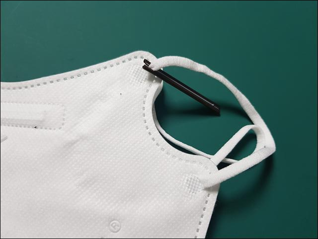 이제 마스크 양쪽에 모두 마스크 끈 조절기를 연결해 준 모습을 보실까요?