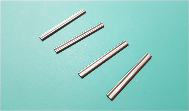 커피 스틱을 5cm 정도 길이가 되도록 컷팅해주시고, 아래와 같이 총 4개를 만들어 주세요.