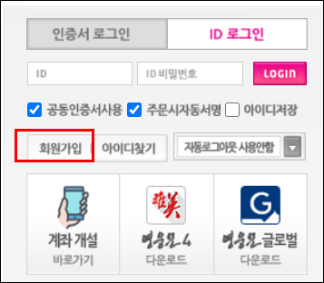 국민은행에서 계좌 개설 시 만들어 놓은 키움증권 아이디