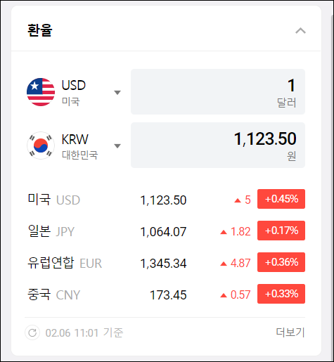 이번엔 환율 정보입니다.