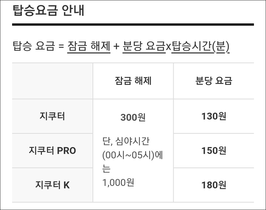 어쨌든 위 요금표를 참고해보면 잠금해제비용에 분당 이용요금이 있으니 가까운 거리는 택시보다 저렴할 것 같습니다.