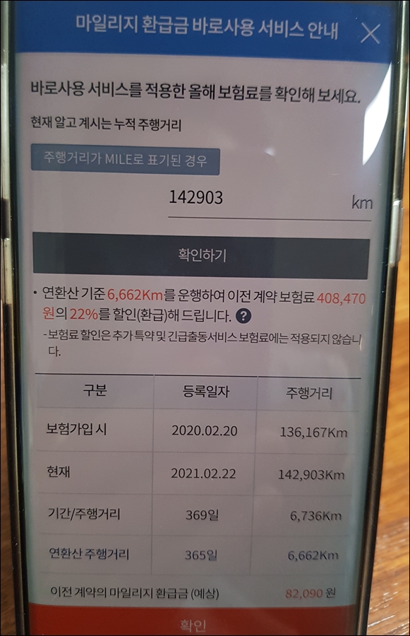 작년의 경우에는 코로나로 인해 여행을 많이 못 다녔으니, 주행거리가 그리 크지 않았습니다. 얼마나 할인받을 수 있는지 아래에서 계속 알아볼까요?