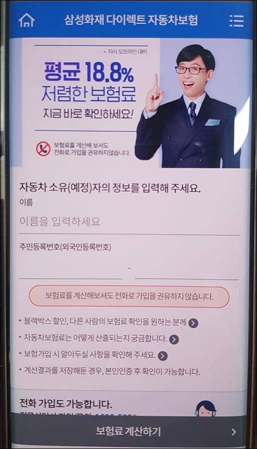 삼성 다이렉트 자동차 보험을 사용해보니 괜찮아서 꾸준히 사용 중입니다. 그래서 이번에도 별 고민 없이 삼성화재 다이렉트로 하기로 했습니다.