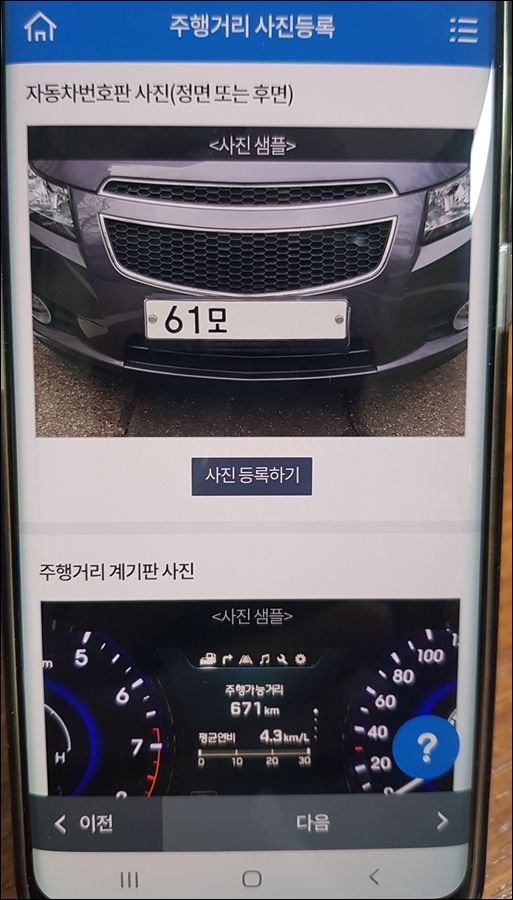 할인 여부를 확인하기위해 자동차 번호판 사진 및 계기판 사진을 찍어서 올려야 합니다.