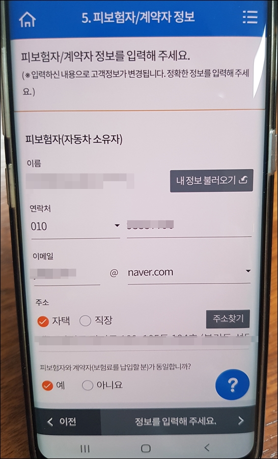 갱신 보험료 계산 및 가입 단계로 진입해 봅니다.