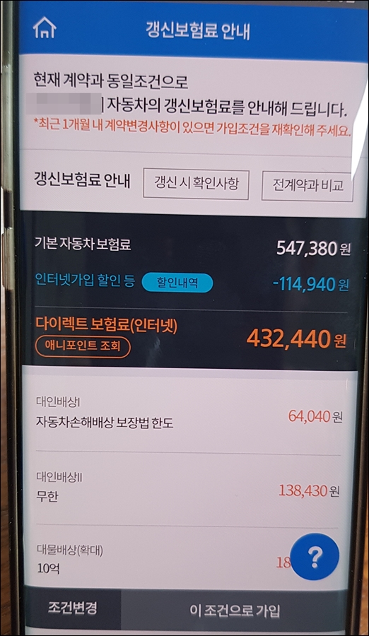 자동차 보험은 일반적으로 갱신할 수도 있지만, 요즘은 대부분 인터넷이나 모바일 어플로 다이렉트 자동차 보험을 가입해서 사용하죠.